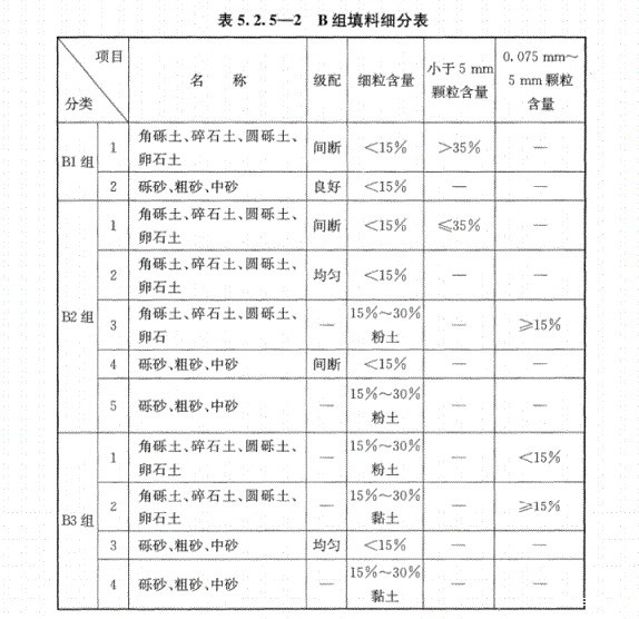 路基填料根据对原土料的使用方法或加工工艺,可分为普通填料、物理改料土、化学改良土和级配碎石,其中的普通填料按工程性能和级配特征可分为A、B、C、D组填料。A、B组填料具体含义如下: