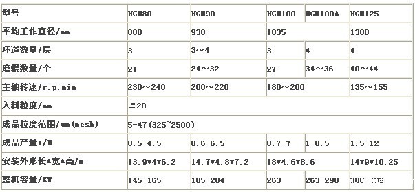 工作时,磨粉机主机电动机通过减速器带动主轴及转盘旋转,转盘边缘的辊销带动几十个磨辊在磨环滚道内滚动。