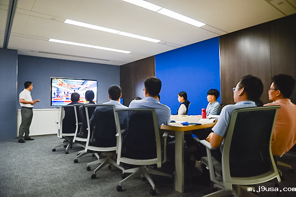 以下是现场之一,业务员们围坐一桌,按照顺序,一一上台做现场演练。为了本场演练,大家都精心准备了PPT文件。在每个业务员的演讲中,其它人可以记录下比较好的内容,互相汲取优质内容,弥补原来的不足,提高自己的业务能力和专业度。